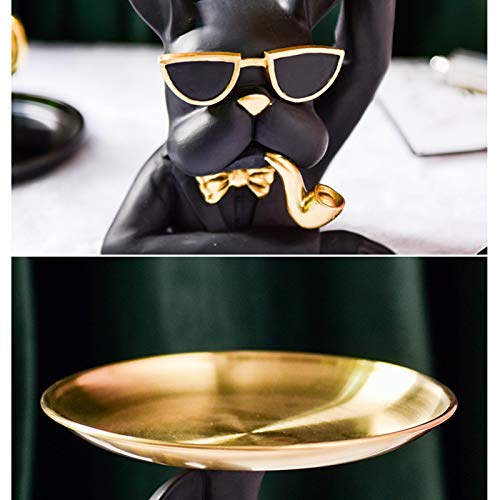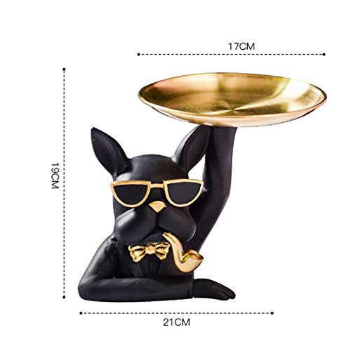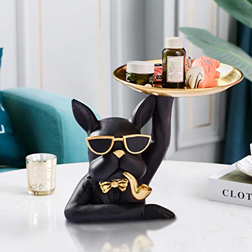 Taloit - حامل مفاتيح وأغراض المرحاض على شكل بولدوج، زينة للشرفة والمكتب، صينية لحمل المفاتيح والحلوى والوجبات الخفيفة، منظم تخزين فني للبطاقات والموبايل وديكور المنزل، مادة صمغية، أسود، من تالويت