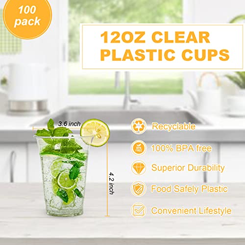 TashiBox - أكواب بلاستيكية للاستعمال مرة واحدة من تاشي بوكس، سعة 355 مل للقهوة والمشروبات الباردة، 100 قطعة