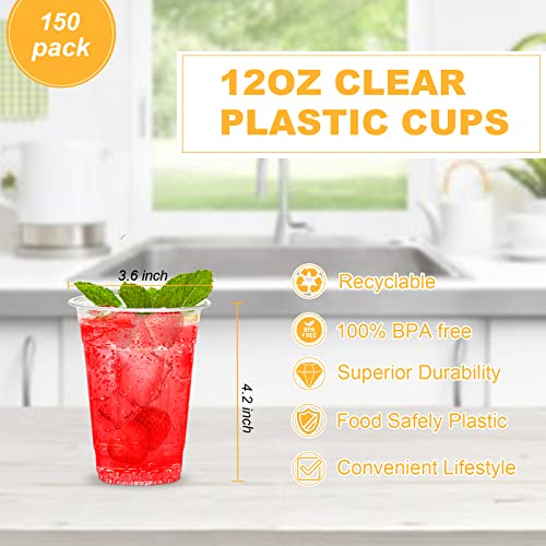 TashiBox - تاشي بوكس [12 اونصة - 150 كوب] اكواب قهوة بلاستيكية شفافة للاستعمال مرة واحدة للشاي والعصائر والمشروبات الغازية المختلطة