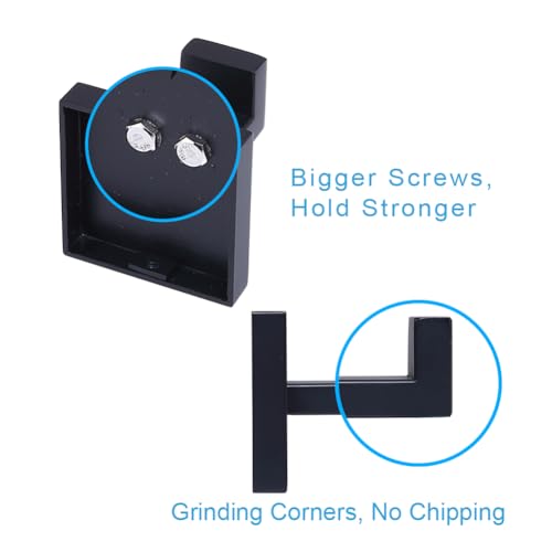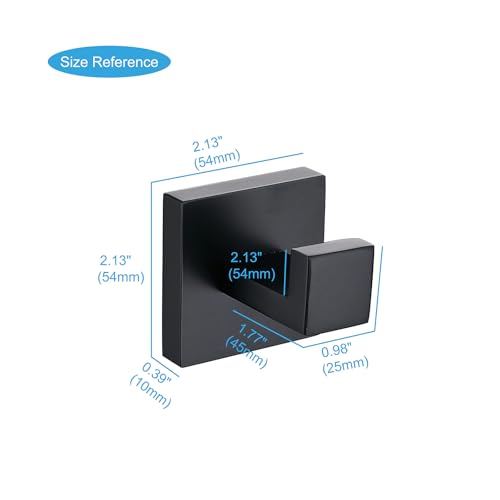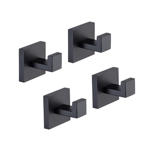 TASTOS - خطافات فوط الحمام بلون أسود مطفي من تاستوس، عبوة من 4 قطع من الفولاذ مقاوم للصدأ لتعليق المعاطف والملابس، خطاف حائط شديد التحمل للحمام والمطبخ، نمط مربع عصري يثبت على الحائط