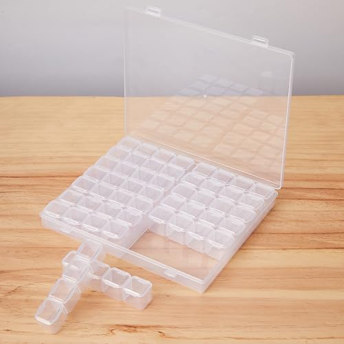 Tcrogsciss - صندوق تخزين بلاستيكي شفاف مكون من 56 شبكة مع فواصل قابلة للتعديل، منظم قابل للتكديس للخرز والحرف اليدوية والمجوهرات