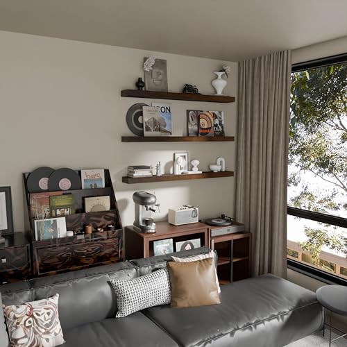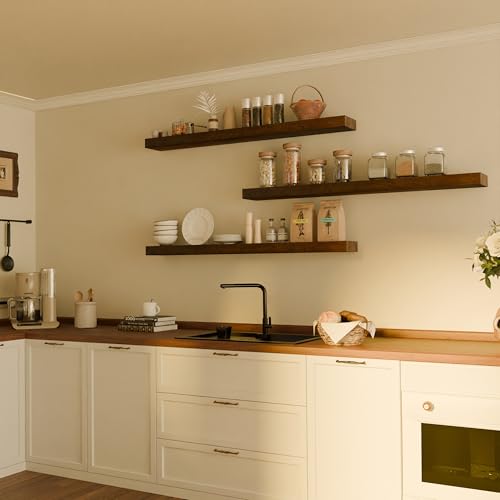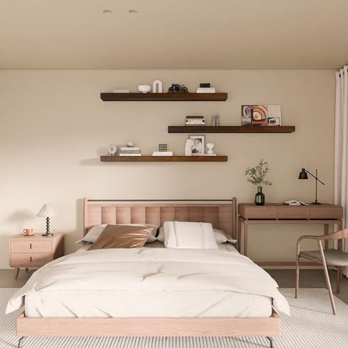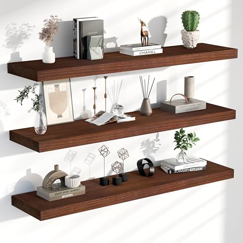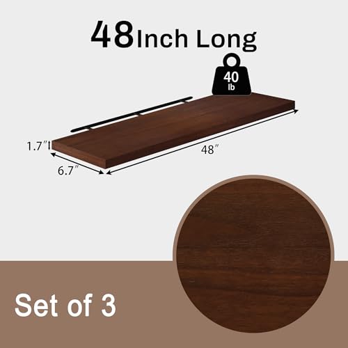 TEDIDUWA - ارفف عائمة للحائط، ارفف حائط طويلة للغاية من خشب الجوز مقاس 48 انش، مجموعة من 3 قطع، ارفف معلقة غير مرئية لغرفة المعيشة وغرفة النوم والمطبخ