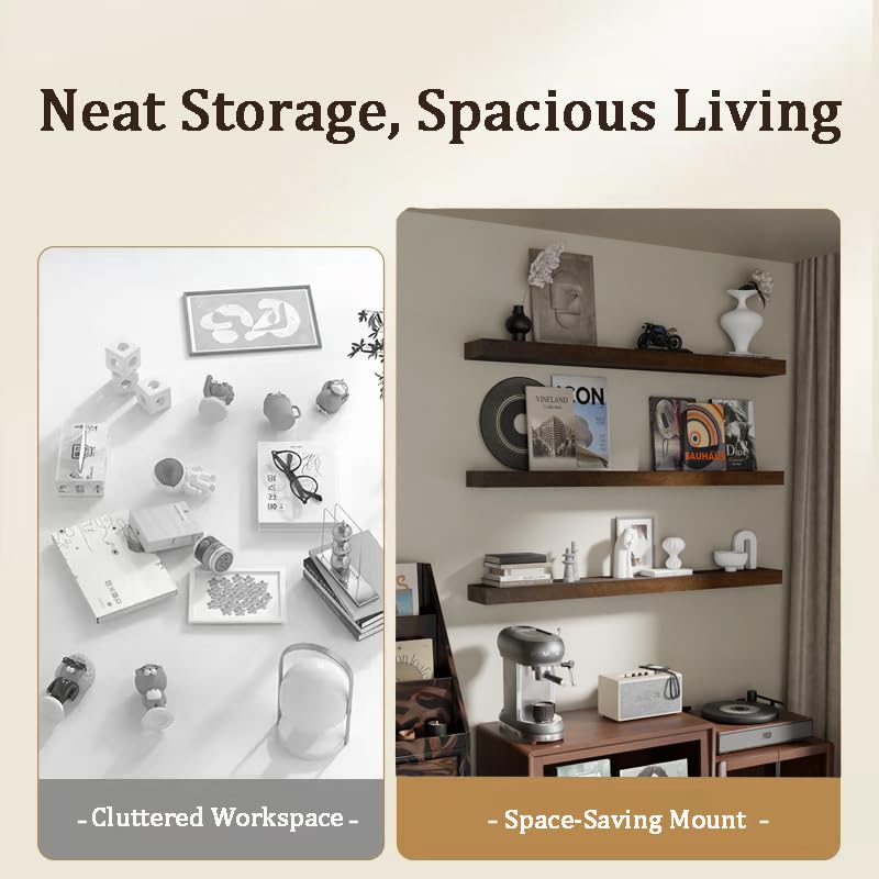 - 【التصميم】مصنوعة مع وضع الأناقة في الاعتبار، توفر أرفف الحائط وأرفف الكتب العائمة الخاصة بنا مظهرًا بسيطًا يعزز أي غرفة. يوفر خيار رف الحائط الأسود لمسة عصرية، بينما يحافظ رف الحائط لوظائف غرفة النوم على مساحتك منظمة وخالية من الفوضى. هذه الأرفف ليست مجرد حلول تخزين ولكنها أيضًا قطع زخرفية تكمل أنماط الديكور المختلفة