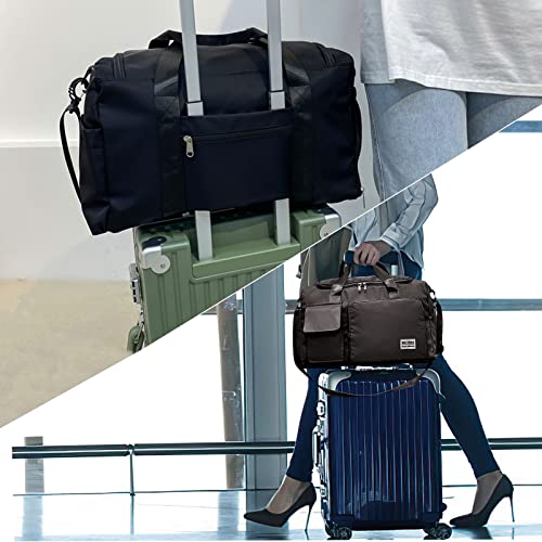 Generic - شنطة سفر للرجال او النساء، شنطة عطلة نهاية الاسبوع لصالة الالعاب الرياضية مع حجرة حذاء قابلة للطي، شنطة لقضاء ليلة، مقاومة للماء متعددة الاغراض، شنطة سفر محمولة خفيفة الوزن, دي-بلاك، نايلون