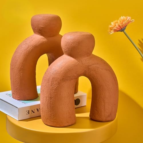 Generic - مجموعة منحوتات قوس تيراكوتا، ديكور عصري تجريدي، لمسة نهائية نسيجية،