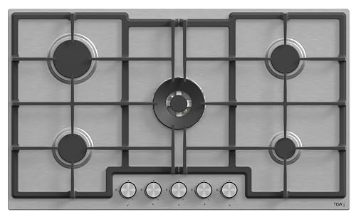 TEVA - موقد غاز مدمج، 90 سم، ستانلس ستيل، 5 شعلات، تركي ED041