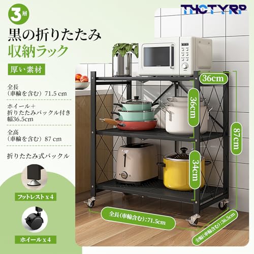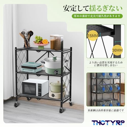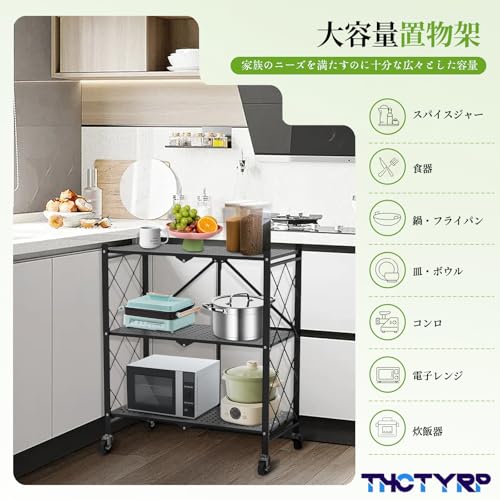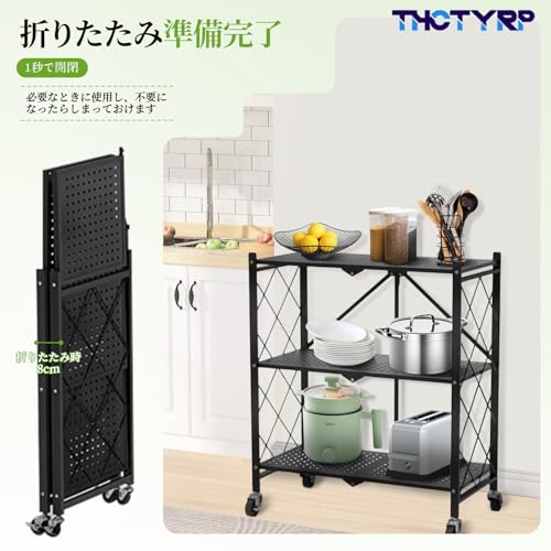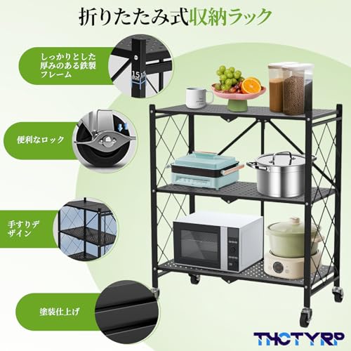 THCTYRP - رف قابل للطي من تي اتش سي تي واي ار بي، رف معدني، رف غسيل (منتج مجمع، فقط اربط العجلات)، رف قابل للطي، سعة كبيرة، مريح، سهل التجميع، متعدد الطبقات، خزانة