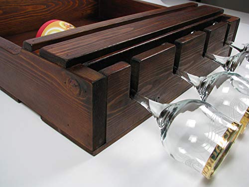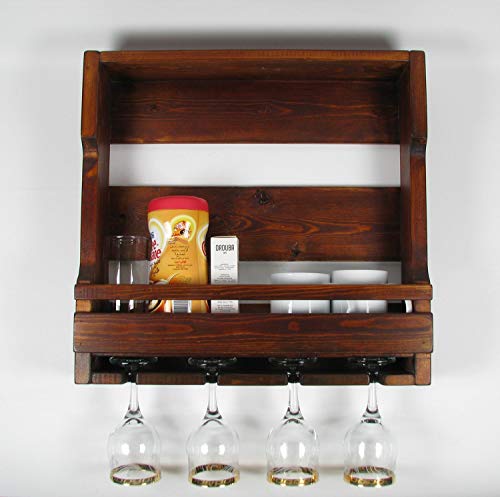 Other - رف الزجاجات و الكؤس الخشبى العتيق، بني