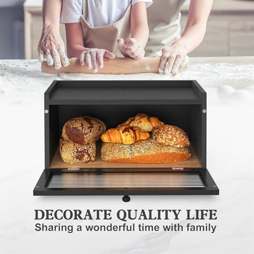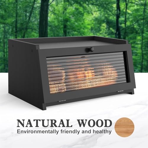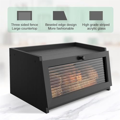 THE WHITE SHOP - صندوق خبز لسطح طاولة المطبخ، حاوية خبز كبيرة بتصميم ريفي لتخزين الخبز، مصممة بنافذة وحامل لتخزين الخبز من ذا وايت شوب (اللون: أسود)