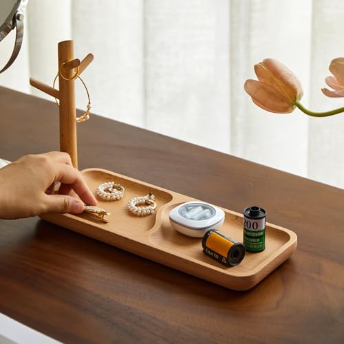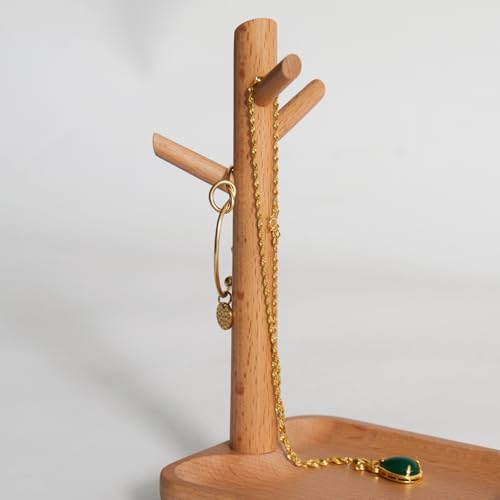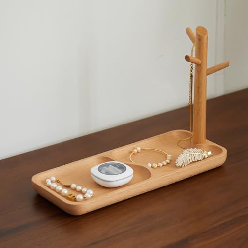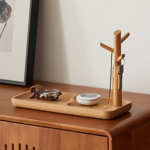 THFLSTR - صينية مفاتيح من خشب الزان الصلب من تي اتش اف ال اس تي ار لطاولة المدخل - منظم ناعم مصقول على شكل فرع مع خطافات للمفاتيح والمحفظة والمجوهرات والنظارات (خشب الزان، مستطيل)