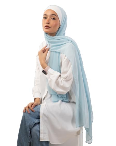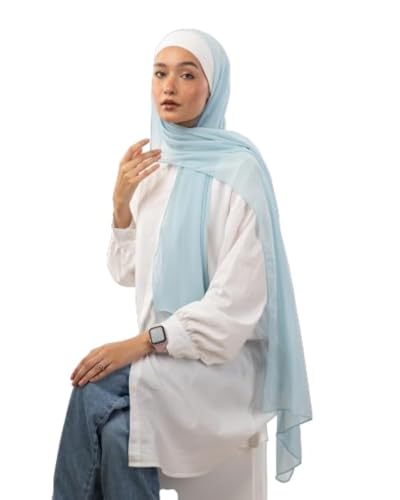Tie Shop - طرحة شيفون كريب سادة للنساء من تاي شوب - BB07CR921300281 - المقاس: 200 × 75 سم - بيبي بلو