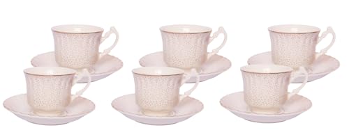 طقم فناجين قهوة بورسلين مع صحون من تايمليس - 12 قطعة - ابيض