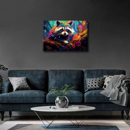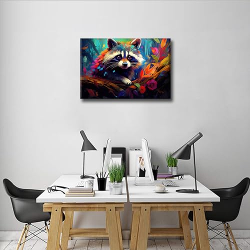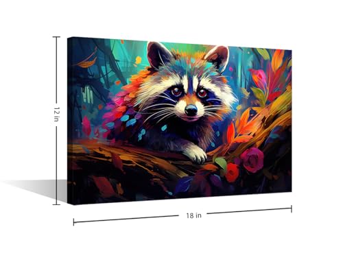 TISHIRON - تيشيرون ملصق مطبوع عليه عبارة Happy Baby Raccoon مع رسومات ملونة من القماش على الحائط لتزيين غرفة المعيشة وغرفة النوم والمكتب - 12 انش × 18