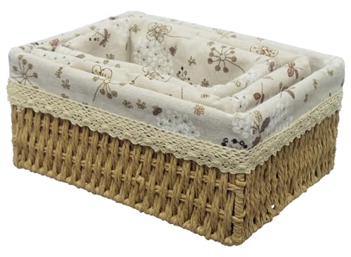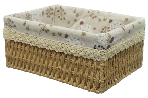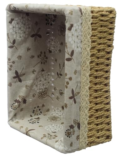 Generic - حافظة لعلبة المناديل خشب خوص مفطي بالقماش بيج وبني
