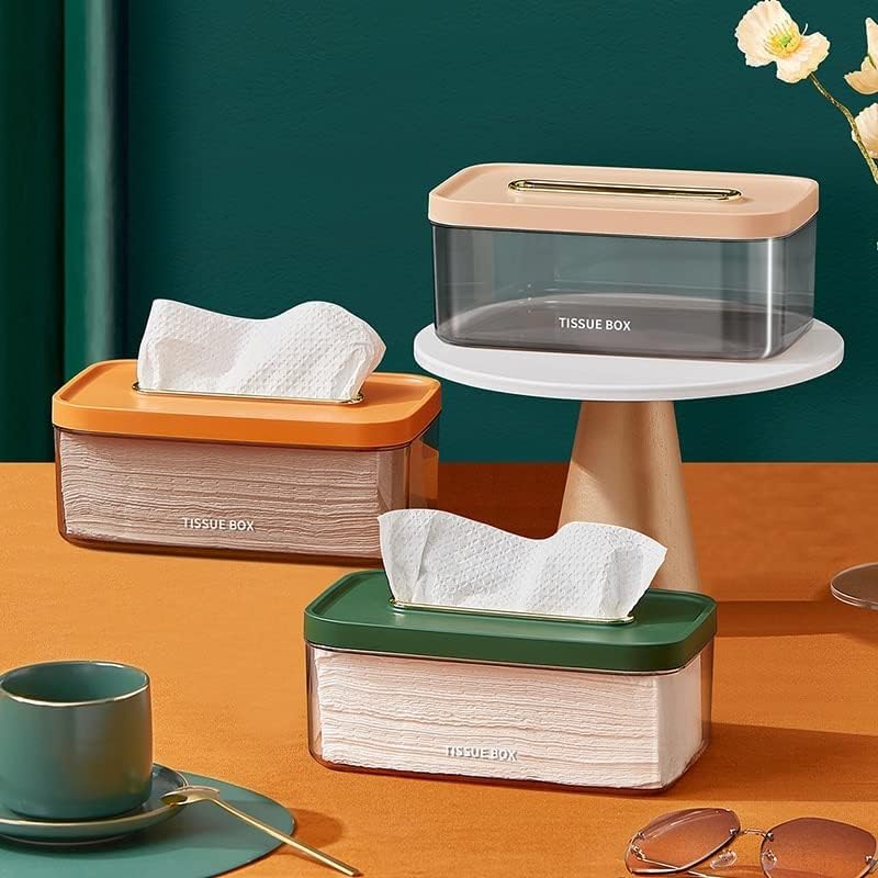 - يمكن أن تحمل المناديل ومناديل الوجه وأوراق التجفيف والمناشف الورقية ومناشف اليد بسهولة، فتحة الغطاء المتحرك واسعة بما يكفي مما يجعل من السهل سحب المناديل