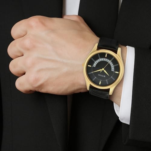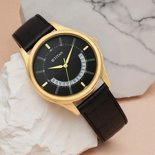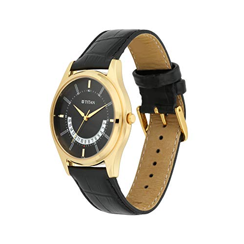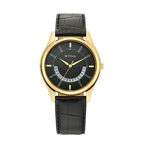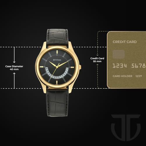 Titan - تايتن ساعة انالوج بسوار جلدي للرجال من لاغان 1713YL01، مقاس 47.4 ملم، اسود