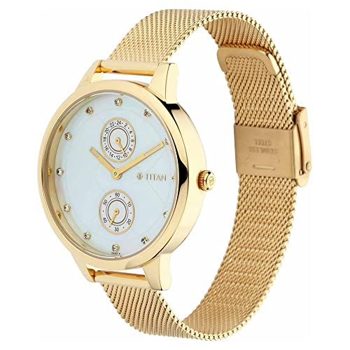 Titan - ساعة يد انالوج بعقارب 2617YM02 من تيتان، بسوار من الستانلس ستيل، مينا لؤلؤية بيضاء - مناسبة للنساء