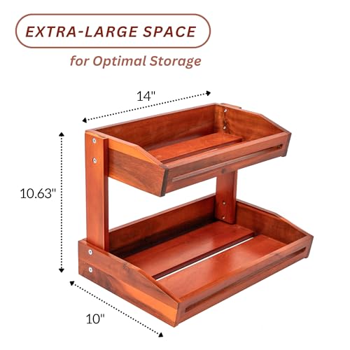 TMT CRAFTS - سلة فاكهة اكاسيا من تي ام تي كرافتس - وعاء فاكهة كبير بطبقتين لطاولة المطبخ وتخزين الفواكه والخضروات وعرض المخبوزات (مقاس كبير 14 × 10 انش)