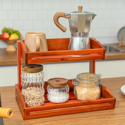 - متينة وأنيقة: التصميم ذو الطبقتين وصواني الخيزران للتنظيم واللمسة النهائية الخشبية الأنيقة تجعل سلة الفاكهة هذه عملية وجذابة بصريًا.