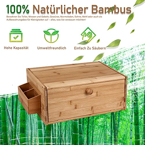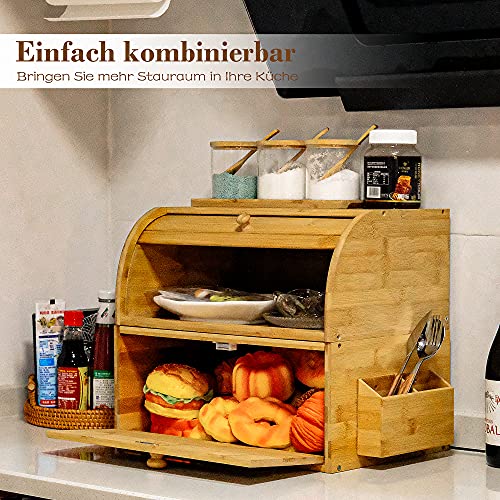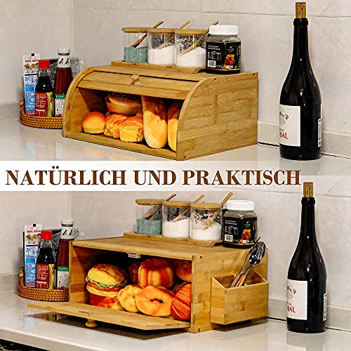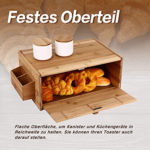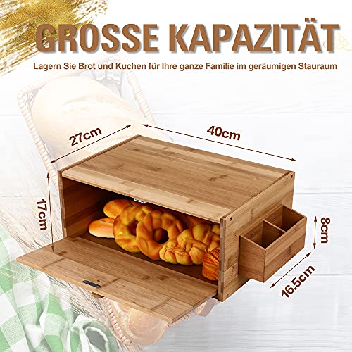 TOLEAD - عياشة لتقديم الخبز من البامبو مع حاويتين جانبيتين إضافيتين لأدوات المائدة والأواني توليد سلة خبز بغطاء مفصل لتخزين 40×27×17 سم الطول × العرض الارتفاع