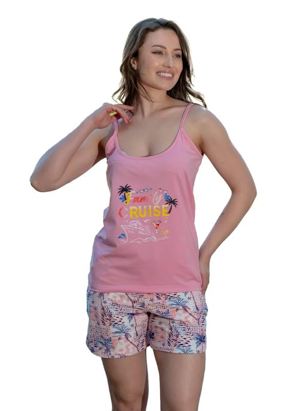 TOLL - طقم بيجامة بحمالات رفيعة مع توب مطبوع وشورت منقوش للنساء من تول، موديل 5010