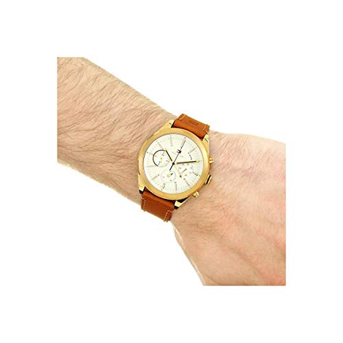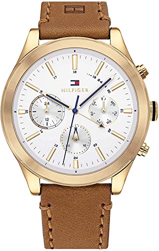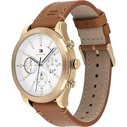 Tommy Hilfiger - ساعة يد كوارتز بمينا متعددة وسوار للرجال من تومي هيلفجر، لون اشتون وفضي وابيض, أبيض فضي