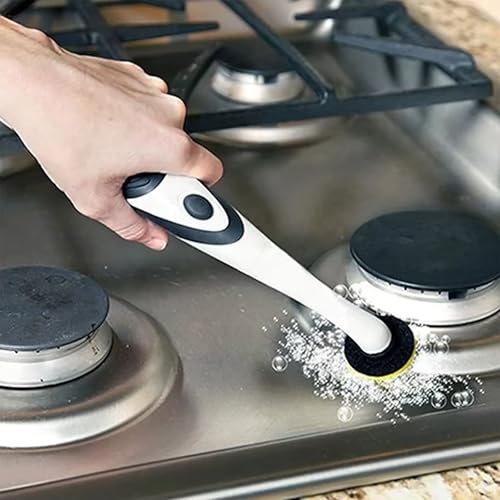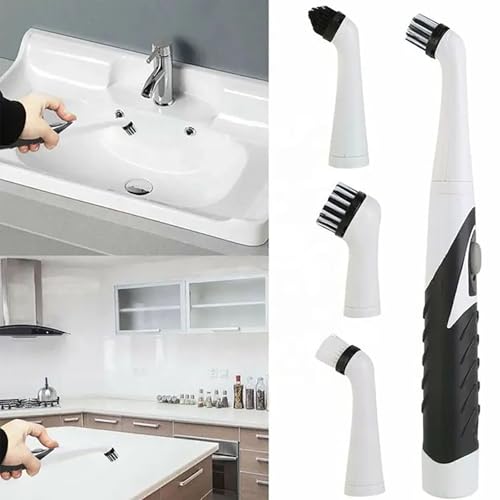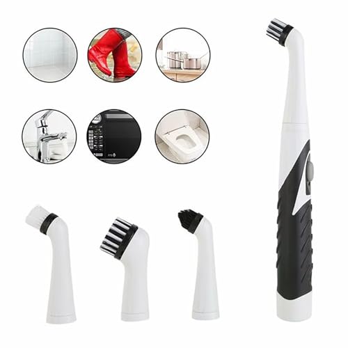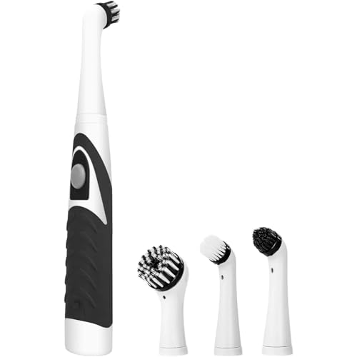 ToolHouse - فرشاة تنظيف كهربائية متعددة الوظائف من تول هاوس، فرشاة تنظيف المطبخ مع 4 رؤوس فرشاة قابلة للاستبدال للحمام والمطبخ والاحواض والبلاط والشقوق والاسطح المختلفة