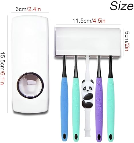 - حامل فرشاة أسنان متعدد الوظائف وموزع معجون أسنان أوتوماتيكي يثبت بإحكام على الحائط، مما يساعد على الحفاظ على حمامك مرتبًا وصحيًا مع فرش منظمة جيدًا وسهولة الوصول إلى معجون الأسنان.