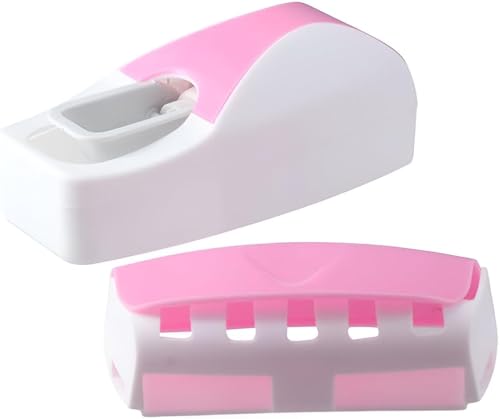 Generic - موزع معجون أسنان تلقائي، بمنظم بلاستيك مثبت على الحائط ومزود بـ 5 حوامل لفرش الأسنان، اكسسوار حمام صحي لراحة الأسرة وحل ذكي لتخزين عصري في المنزل