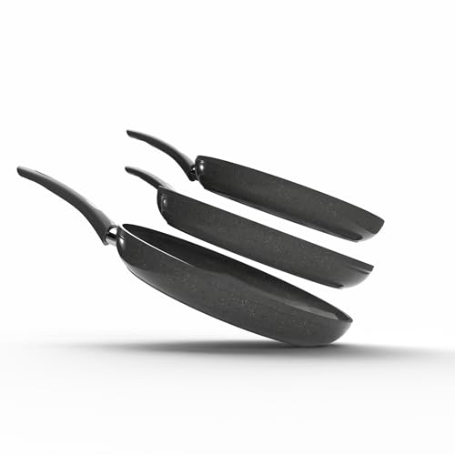 Top Chef - طقم طاسات قلي جرانيت من 3 قطع، لون رمادي من توب شيف
