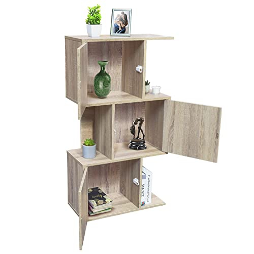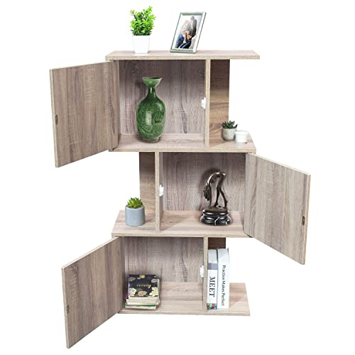 TOPLIVING - دولاب كتب بتصميم بسيط من توب ليفينج للتخزين والتنظيم مصنوع من خشب متين بثلاثة أبواب وسطح عريض، بيج، خزانة كتب