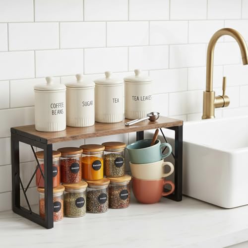 TOPZEA - توب زي رف مكتبي، رف منظم قائم بذاته من الخشب الريفي، رف كتب صغير عتيق، رف تخزين مكتبي مستقل قابل للتكديس من طبقتين رف مفتوح، رفوف عرض المطبخ، كوخ مكتبي، ترقية