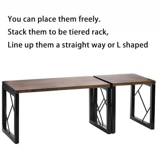 - يمكن لرفوف تنظيم سطح الطاولة تخزين الأشياء المزدوجة بحيث يمكن وضع الأشياء فوق وأسفل، مما يوفر لك مساحة تخزين أكبر قليلاً، وتساعد على التخلص من الكثير من الفوضى على مكتبك. متعددة الاستخدامات للغاية، تستخدم بشكل رائع كحامل للزوايا، رف توابل المطبخ، حامل شاشة سطح المكتب، رف للكتب، حامل شحن، حامل عرض خشبي، حامل نباتات وأكثر من ذلك.