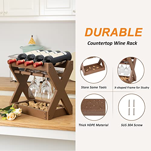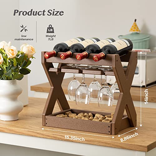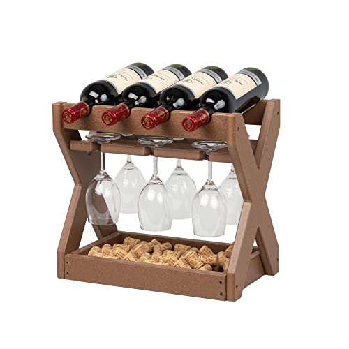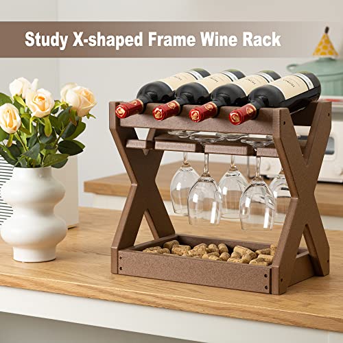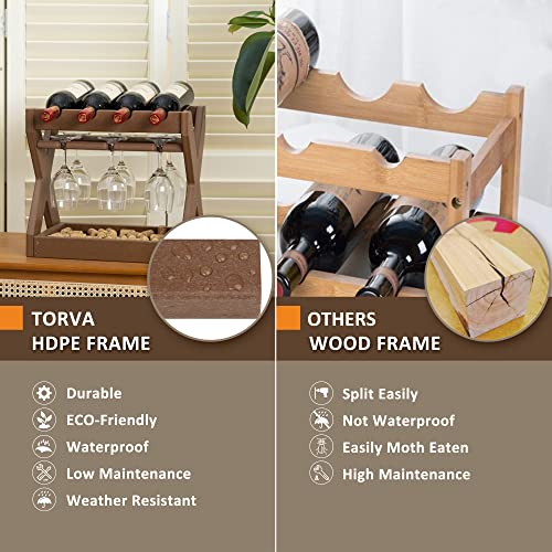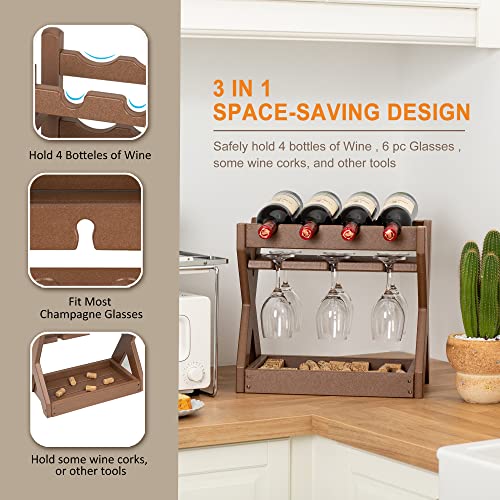 TORVA - رفوف مشروبات تورفا لسطح الطاولة مع حامل أكواب، رف صغير لـ 4 زجاجات مصنوعة من بولي ايثيلين عالي الكثافة لسطح الطاولة للمطبخ، غرفة المعيشة، غرفة التخزين، البار (أصفر بني)