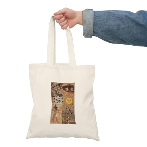 Generic - Tote Bag – شنطة قماش بسحاب - "عين اليقين" - كولاج أنوبيس، عين حورس، ورموز الحماية الفرعونية – شنطة واسعة وخفيفة للتسوق اليومية – حقيبة عملية صديقة للبيئة وقابلة لإعادة الاستخدام