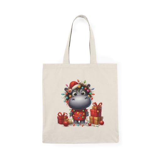 Generic - شنطة توت قماشية بسحاب 127 - شنطة يد كبيرة توت بتصميم سانتا كلوز للكريسماس مع سحاب