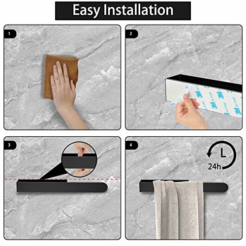 Strength Enemy - حامل فوط ذاتي اللصق من الفولاذ المقاوم للصدأ 304 يثبت على الحائط بدون ثقب مقاوم للصدأ والخدوش ومناسب للحمام والمطبخ، لون أسود، مقاس 20 سم