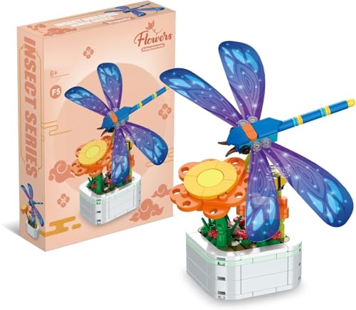 TOYS LAND - ألعاب مكعبات بناء باقة زهور صناعية وحيوانات من تويز لاند صغيرة 214 قطعة مجموعة النبات لعمل ديكور المنزل بنفسك هدايا عيد ميلاد للنساء والبالغين والأطفال اليعسوب ودوار الشمس
