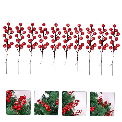 Toyvian - 10 قطع من اعواد التوت الاحمر الصناعية سيقان الصناعي باقة للكريسماس توت هولي لتزيين الطاولة والمزهريات وديكور شجرة الكريسماس دعائم الصور التي تصنعها بنفسك
