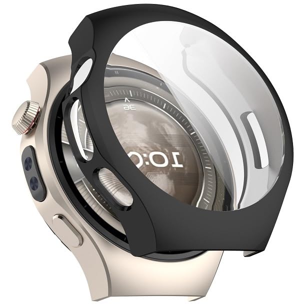 fashion mania - جراب ساعة من مادة البولي يوريثين المقاوم للحرارة لساعة هواوي 5 مقاس 46 ملم 2025 مع حماية كاملة للشاشة - (لون أسود)
