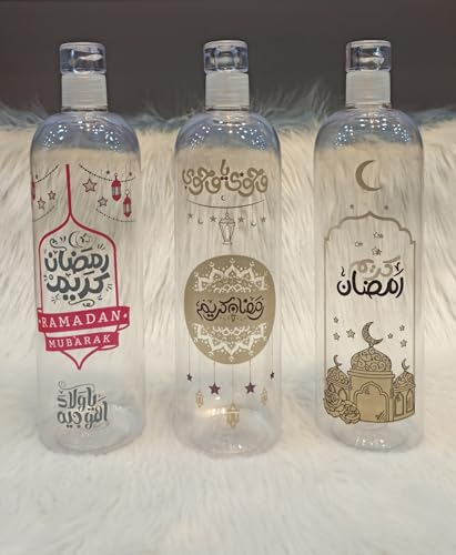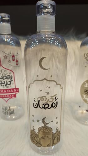 Generic - زجاجة مشروبات شفافة بطابع رمضان، زجاجة بلاستيكية مزخرفة خفيفة الوزن مع طباعة احتفالية باللغة العربية للمياه والعصير والمشروبات الباردة من 1 قطعة