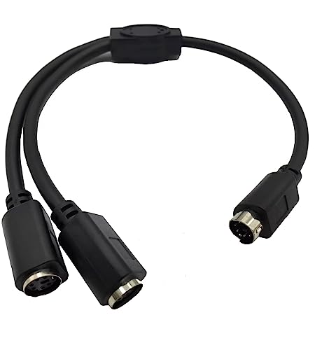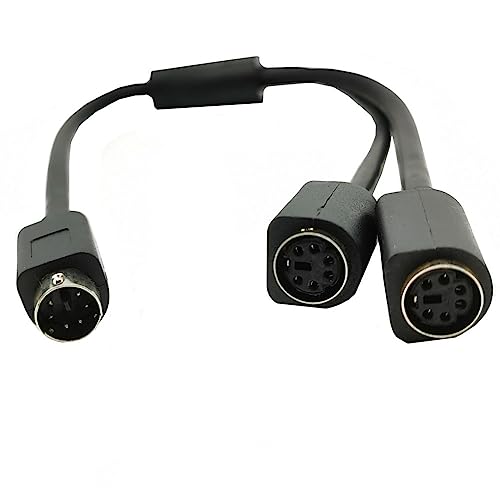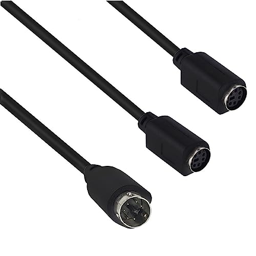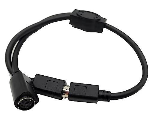 Traovien - محول وصلة ميني دي اي ان 6 دبابيس ذكر الى 2 × انثى كيبل Y واجهة لوحة المفاتيح والماوس 0.3 متر أسود