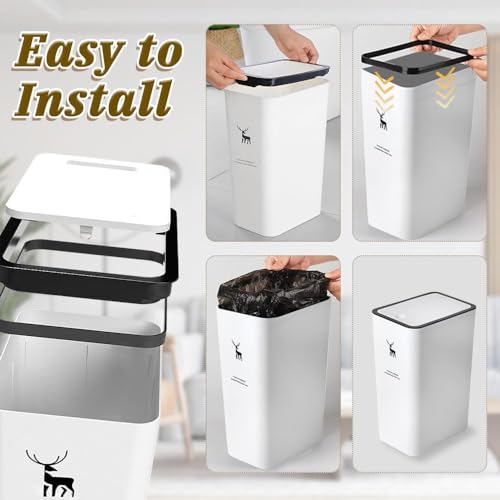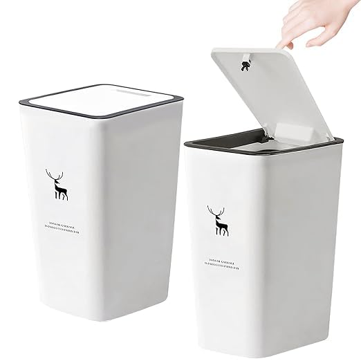 Generic - سلة مهملات بغطاء سعة 15 لتر مع غطاء ضغطى ، سلة مهملات بلاستيكية للحمام والمطبخ وغرفة النوم والمكتب وغرفة المعيشة والدراسة (ابيض)