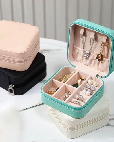 - 【المادة: منظم مجوهرات للسفر مصنوع من جلد صناعي عالي الجودة، متين ومقاوم للماء، بطانة مخملية ناعمة لحماية الخاتم من التآكل بسوستة وإغلاق سلس، مما يجعل من السهل فتحه وإغلاقه.