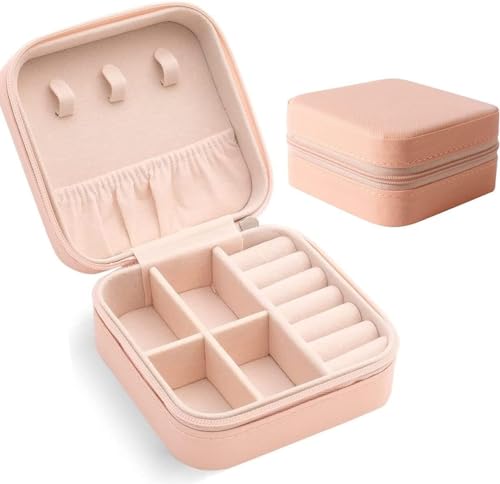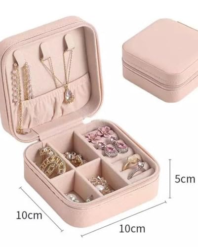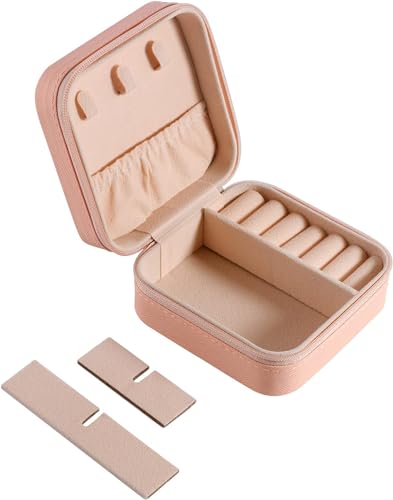 Generic - منظم مجوهرات للسفر محمول للأقراط والقلائد والمجوهرات ثلاث طبقات مع خطافات صندوق تخزين بفواصل قابلة للإزالة وردي جلد صناعي