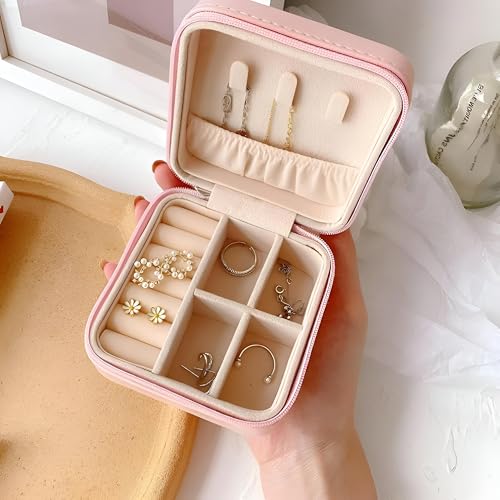 Generic - حافظة مجوهرات للسفر - صندوق تخزين جلدي انيق مع مقصورات مقسمة، مثالي للاستخدام اليومي او الهدايا، تصميم مكعب 10 سم، خيارات الوان نابضة بالحياة (بينك)