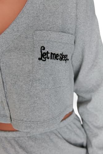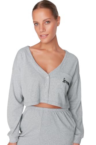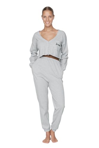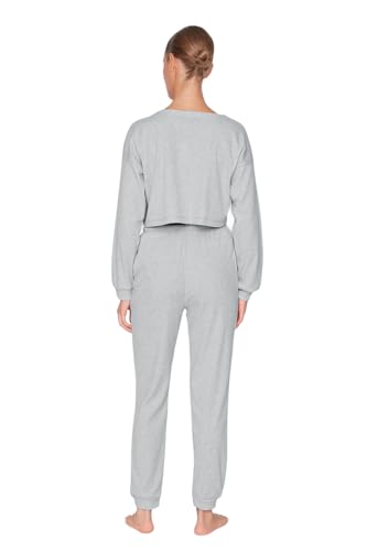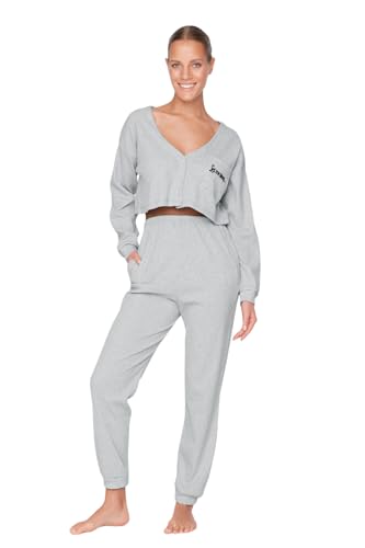 Trendyol - بيجامة للنساء، خامة منسوجة مضلعة وتفاصيل مطرزة من ترنديول، مقاس اكس لارج XL، لون رمادي، Thmaw22Pt0511