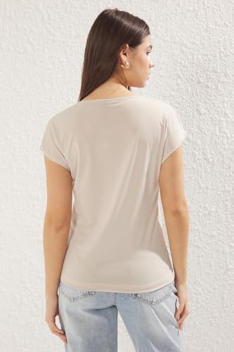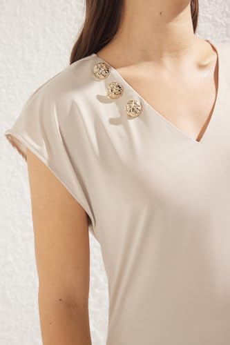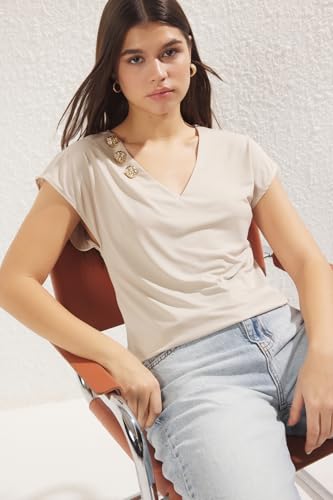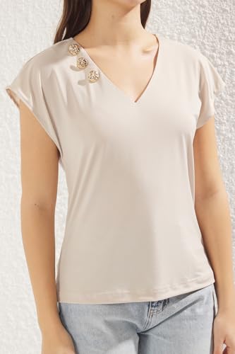Trendyol - بلوزة محبوكة بقصة عادية ورقبة على شكل V وأكمام بشكل قمر للنساء موديل TWOSS25BZ00035 من ترنديول