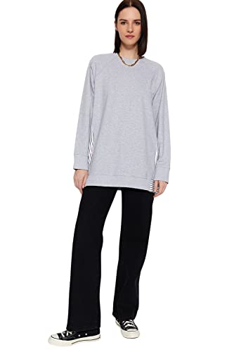 Trendyol - سويت شيرت تونيك TCTSS23UK00092 بنسيج محبوك، قصة واسعة وبتفاصيل قماش منسوجة للنساء مناسب للحجاب من ترينديول