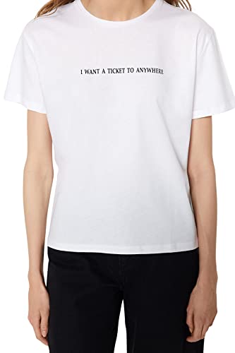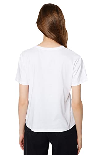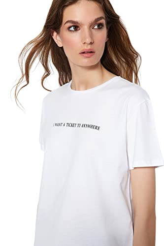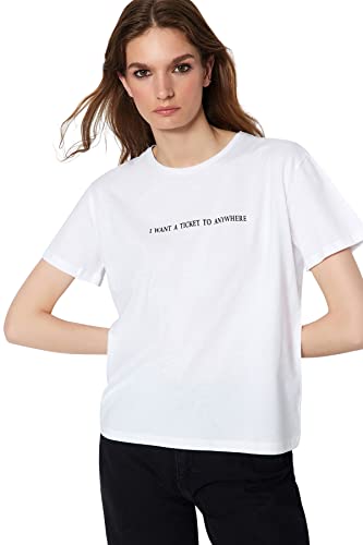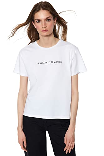 Trendyol - ترنديول تيشرت بيسيك محبوك برقبة دائرية ضيقة وقصة مريحة للنساء مصنوع من القطن بنسبة 100% مطبوع عليه شعار TWOSS20TS0207